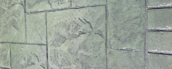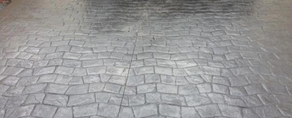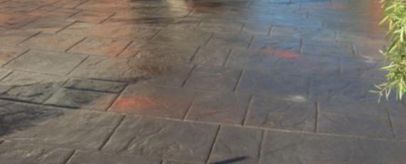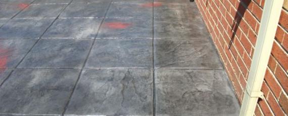 This is our 600 x 600 Slate Tile pattern with a cobblestone boarder. The base colour is bluestone with a little blend of red and a black releasing agent.The slate tile pattern gives you a tile or paver look.It can be done in all colours and gives a nice flat surface with the look of slate on each paver or tile.